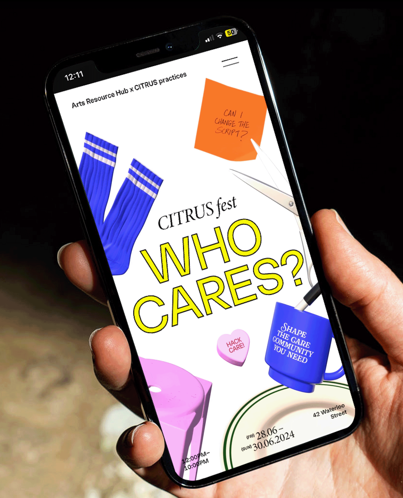 3D, VISUAL IDENTITY, UI/UX, SPATIAL BRANDINGCITRUS fest began as a way to encourage conversations around the structures and conditions of working in the arts today. Framed as a three-day 'potluck' festival, it includes communal dinners, workshops, and conversations designed to help the public understand care practices across Singapore’s arts ecosystem.
